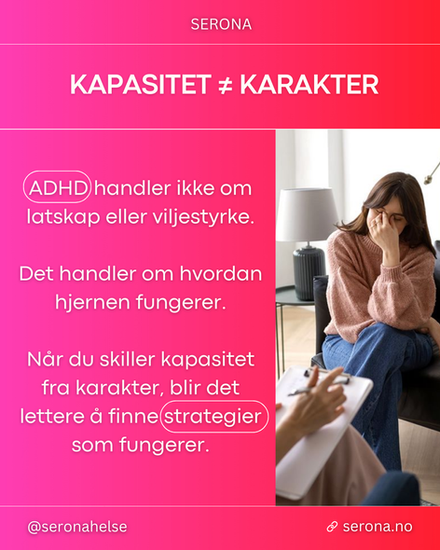 Ved ADHD innebærer det ofte å forstå hvordan oppmerksomhet, tidsopplevelse, motivasjon og impulsivitet faktisk fungerer. Mange oppdager at det de har tolket som latskap eller manglende viljestyrke, i realiteten handler om hvordan hjernen regulerer energi og fokus.